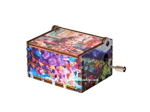 Oil Painting Style carved Birthday Cake hand-cranked wooden box,